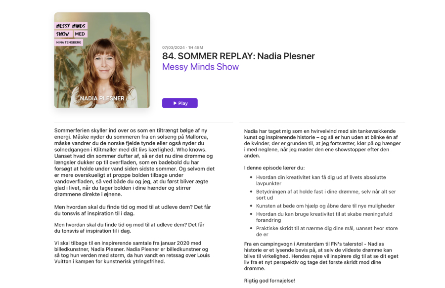 On April 21, 2020 I was a guest on the podcast Messy Minds Show hosted by Nina Tengberg.
