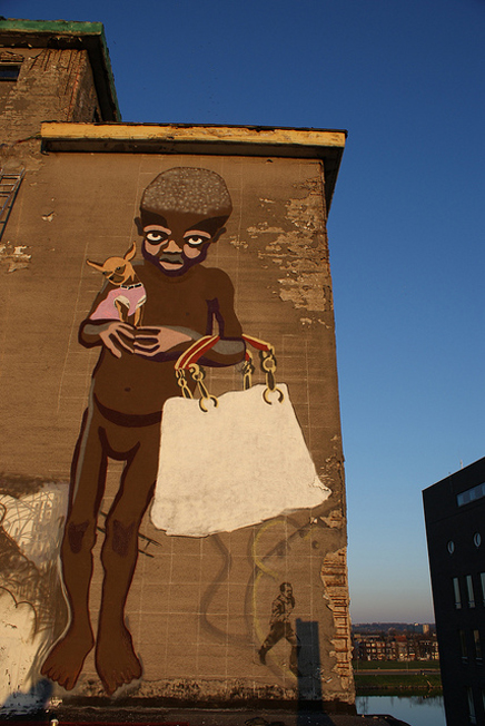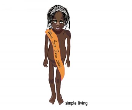 This drawing was a comments on the way Western media pressures women to be a "size zero", while other people are starving.