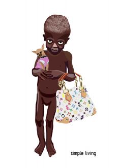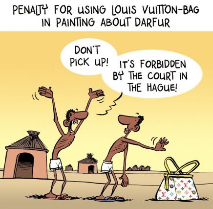 My thought was: Since doing nothing but wearing designer bags and small dogs dressed in pink apparently is enough to get you in the news, maybe it is worth a try for people who actually deserve and need attention.I mixed the cruel reality with showbiz elements in Simple Living and had the drawing printed on t-shirts and posters, which I sold to raise money for the organisation Divest for Darfur. I was hoping that the drawing would raise awareness about Darfur and start a debate about mass media language and the sometimes distorted relationship between small and big world news.When I was sued by Louis Vuitton because of the bag appearing in my Simple Living drawing the campaign got a lot of media attention all over the world.Unable to afford the court case I decided in the end to stop selling my t-shirts and start a new Darfur campaign, Simple Living 2. The attorney who advised me through the legal dispute told me, that if only I had made a more classical art work, like an oil painting, I would have been able to paint whatever I liked.This gave me the idea to let the Simple Living boy live on in a modern version of Picasso's famous painting Guernica, and my painting Darfurnica was completed in September 2010.It was exhibited for the first time in the Odd Fellow Palace in Copenhagen in January 2011 as a part of my show INTERVENTION.The exhibition was timed with the elections in Sudan regarding the South becoming independent, and I aimed to use the show as a platform to make people aware of this process, as it was expected that the referendum could make the violence in Sudan escalate once again.By the end of the exhibition I received an ex parte order from Louis Vuitton. They had gone to court without me and had Simple Living and Darfurnica banned. I was ordered by the court of the Hague to pay 5000 Euros for each day I continued to show Darfurnica or Simple Living in the gallery space or online.I felt outraged by the court's decision and this time I chose to countersue. In May 2011 I met Louis Vuitton in the court of the Hague and had my first chance to explain to the judge why I should be allowed to include references to status symbols in my art works.In June 2011 we received the verdict: The first ex parte order was crushed in its entity and I was now free to exhibit both Simple Living and Darfurnica. I no longer had to pay the penalty fines of 485.000 Euros. The court also ordered Louis Vuitton to pay a part of my legal costs.
