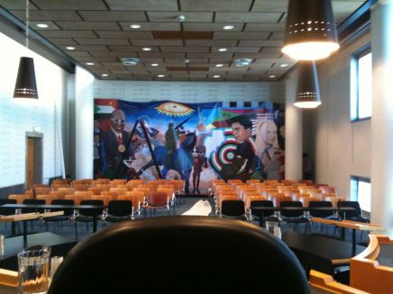 A 1:1 print of Darfurnica in the court room in the Hague. This print was used as evidence.