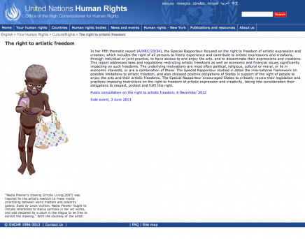 In November 2012 I was asked by the United Nations if they could use my Simple Living drawing on their website as illustration on the page about artistic freedom. Of course I said yes. It feels unreal that my drawing, which was once illegal, now lives on here.