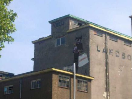 A 7 meter tall Simple Living boy appeared on a building in Maastricht.