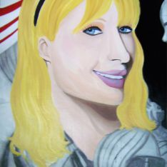 Today I finished painting Jade Goody, the English reality star who became famous from Big Brother and later diagnosed with cancer while appearing on the Indian version of Big Brother, Big Boss. As I described in one of my previous posts, her sickness and death in 2009 was closely followed by the tabloids. The death of one celebrity, who interestingly enough was ridiculed by the press until she was diagnosed with cancer, made more headlines than you can imagine.