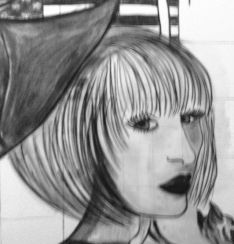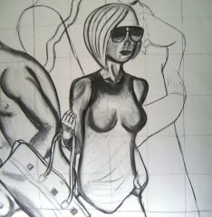 Today I added a sketch of Paris Hilton to the painting. I decided from the start that her size in Darfurnica should be proportional with the amount of publicity she gets in real life: GIGANTIC!