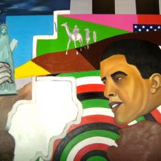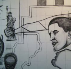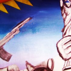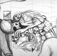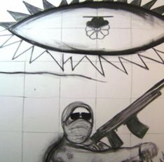 While working on Darfurnica I uploaded pictures of my work after each step. My goal was to capture a specific time period with this painting and the content could change along the way according to what is happening in Darfur and simultaneously in the free world. Although Darfurnica is finished I will not upload the final posts until after the exhibition as I hope to leave a bit of curiosity intact. After the show I will upload all the final posts. Thank you for following the process and for all the enthusiastic suggestions, emails and comments I have received along the way.
